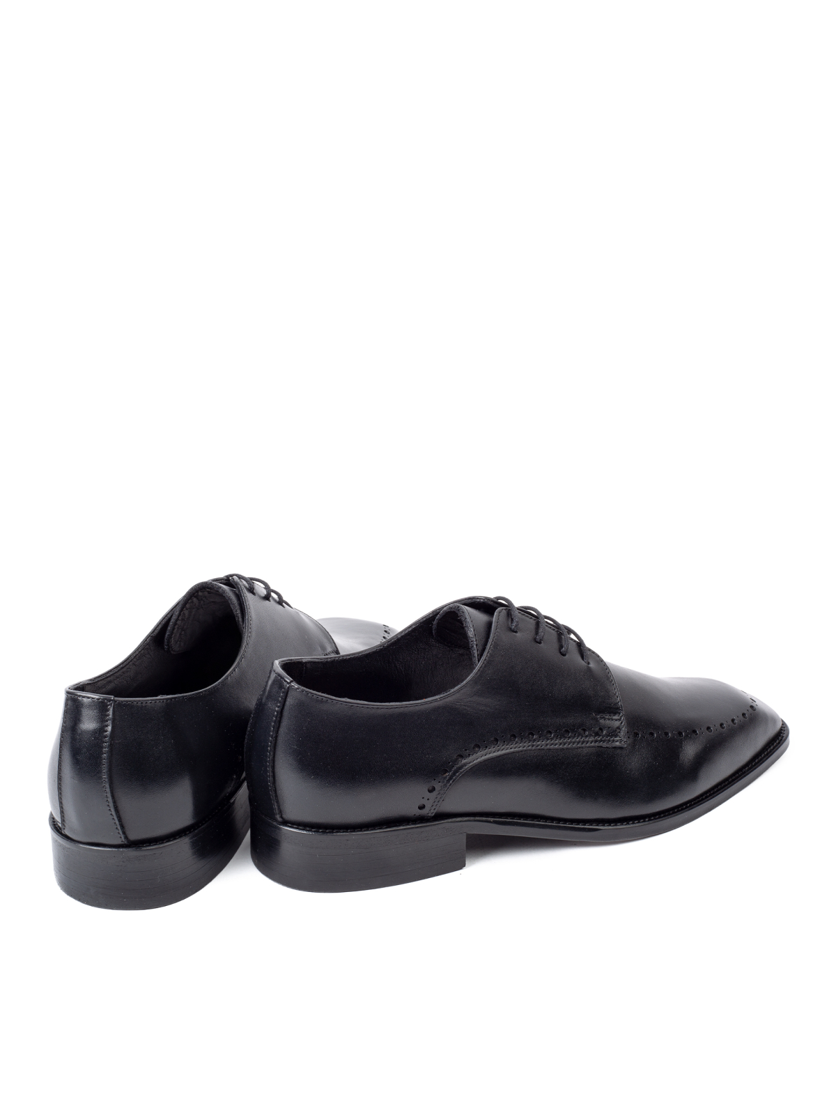 Realizați din piele naturală neagră cu finisaj neted, acești pantofi Derby se evidențiază prin perforațiile fine plasate discret pe partea frontală și laterală. Designul este echilibrat, potrivit atât pentru mediul business, cât și pentru evenimente formale.